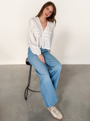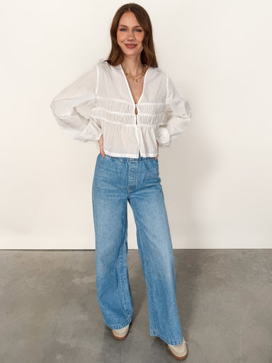 DESCRIPTION:   Peplum Tie Detail at Front Elastic at Sleeve Lightweight Cotton Fabrication SIZE & FIT:   Style is relaxed. Model is 5'4 and i...