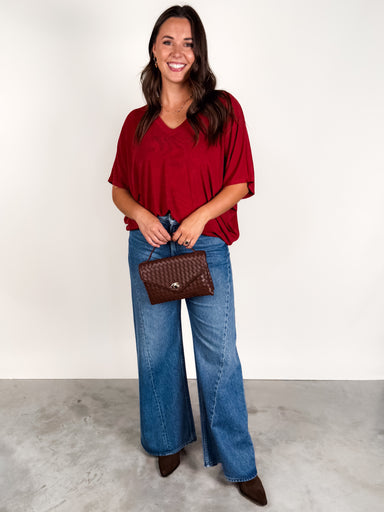 DESCRIPTION: the mindy top from our brushed waffle collection brings just the right mix of sweet and bold. with a capped sleeve and a hem that hi...