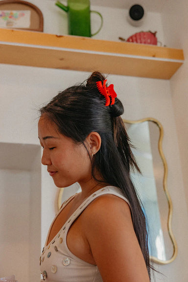 DESCRIPTION: Made for finer hair or your perfect “I need it up NOW” half up/half downs, this claw is perfect to elevate your hair without even tr...