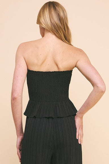 DESCRIPTION: Strapless Smocked Bodice Not Lined Ruffled Trim SIZE & FIT: Style is relaxed. Model is 5'4 and is wearing a size S. MATERIA...