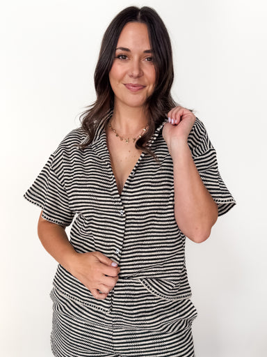 DESCRIPTION: Crew Neckline Textured Fabrication Dropped Shoulder Side Slit High Low Hem SIZE & FIT: Style is relaxed. Model is 5'9 and is...