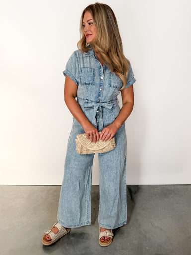 DESCRIPTION: Lightweight and effortlessly chic, this slub knit jumpsuit is designed with a straight leg and a flattering V-Neckline. The button ...