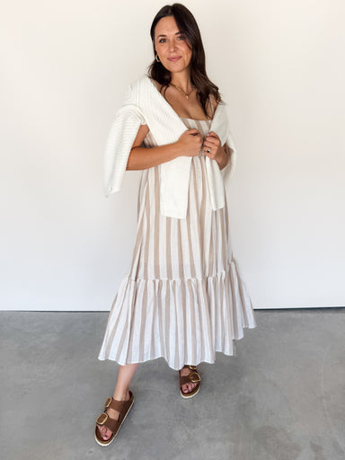DESCRIPTION: Smocked Bodice Tie Detail at Waist Ruffled Straps SIZE & FIT: Style is relaxed. Model is 5'9 and is wearing a size S. MATER...