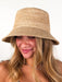 Woven raffia bucket hat with a tall profile and adjustable interior band