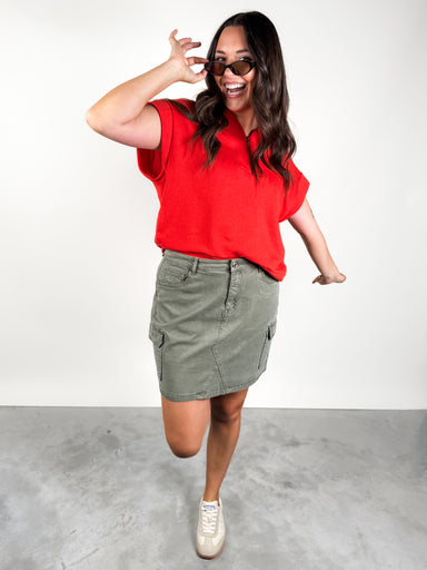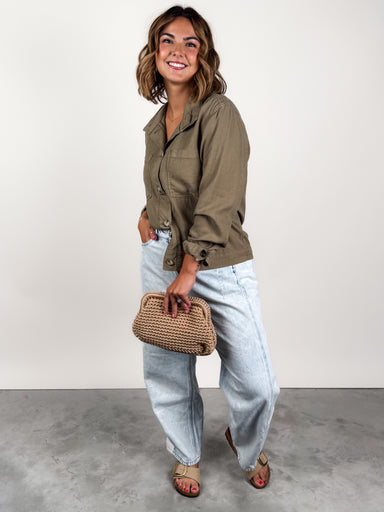 DESCRIPTION: Elastic Waist Cargo Details Jogger Hem Pair with the 'Walk You Home Oversized Collar Sweatshirt' SIZE & FIT: Style is relaxe...