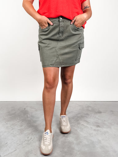 DESCRIPTION: Lined Skirt Hidden Side Zipper Wrap Front with Buckle Details SIZE & FIT: Model is 5'8 and is wearing a size S. MATERIAL &a...