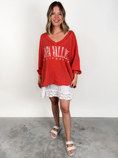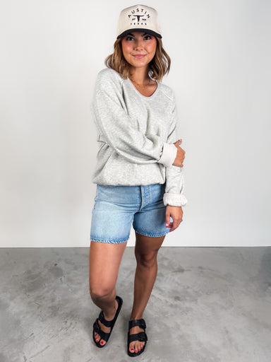 Best SellerDESCRIPTION: Crew Neckline Dropped Shoulder Longer/Oversized Silhouette Super Soft Fabrication Side Slits Pair with the 'Close The Door Sweatpan...