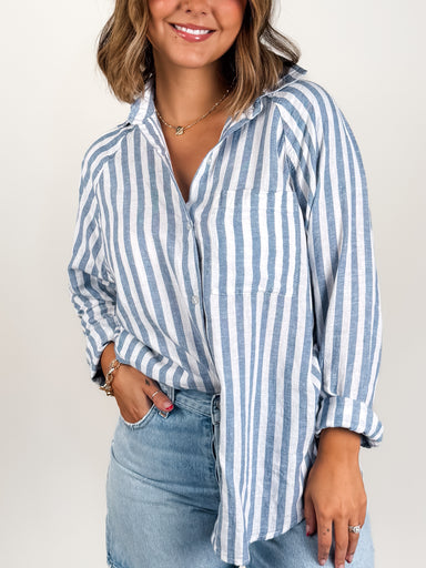 DESCRIPTION: Elevate your everyday style with this dark wash button front shirt, featuring long sleeves and subtle contrast thread detailing for ...