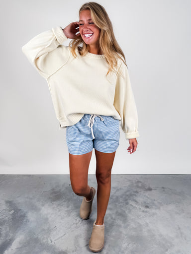 DESCRIPTION: Elastic Waist with Drawstring Wide Leg Pair with the 'Roll with the Punches Sweater' SIZE & FIT: Style is relaxed. Model is ...