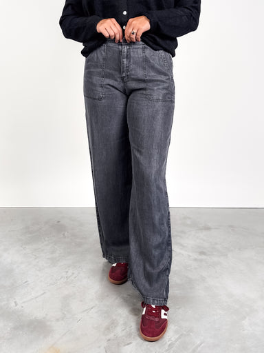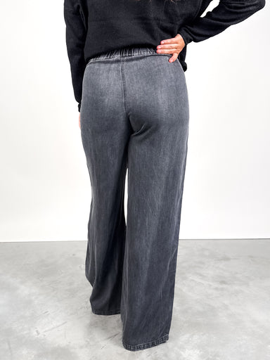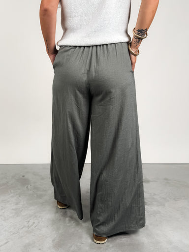 DESCRIPTION: Elastic Waist Functional Pockets Wide Leg Pair with the 'The Cards Left To Play Shirt' SIZE & FIT: Style is relaxed. Model...