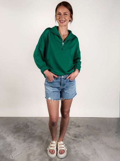 DESCRIPTION: A relaxed but elevated addition to your everyday style rotation, the Xina is a half-zip sweat cut to a chic longline silhouette. Cra...