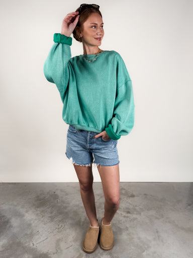 Best SellerDESCRIPTION: Crew Neckline Dropped Shoulder Longer/Oversized Silhouette Super Soft Fabrication Side Slits Pair with the 'Close The Door Sweatpan...