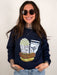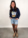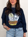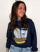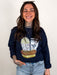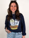 This navy crewneck sweatshirt features a playful baseball snacks graphic - complete with a cup, popcorn, and hot dog (mustard included). Cozy, cute, and made for game days.