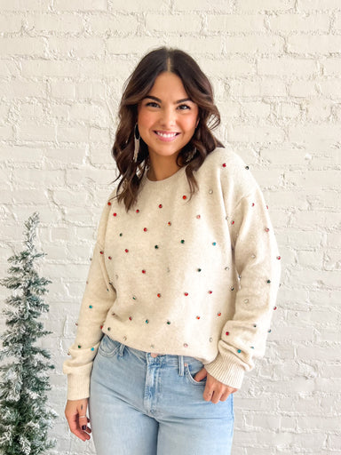 DESCRIPTION: Transform your wardrobe with this gorgeous black soft knit sweater featuring exquisite embellishments of shimmering sequins on the f...