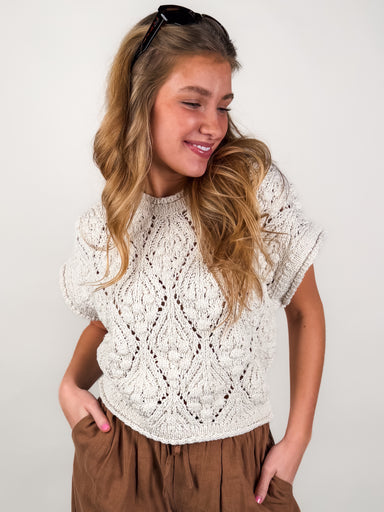 DESCRIPTION: Rounded Neckline Ribbed Trims Cable Knit Details SIZE & FIT: Style is relaxed. Model is 5'4 and is wearing a size S. MATERI...