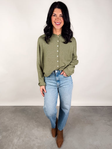 DESCRIPTION: Rounded Neckline Ribbed Trims Functional Buttons Lightweight SIZE & FIT: Style is relaxed. Model is 5'8 and is wearing a siz...