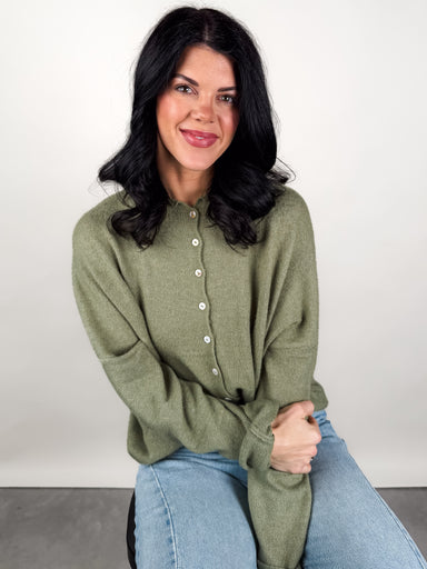 DESCRIPTION: Crew Neckline Button Front Dropped Shoulder Long Sleeves Super Soft Fabrication SIZE & FIT: Style is relaxed. Model is 5'5 ...