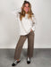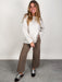 Style is relaxed. Model is 5'8 and is wearing a size S.