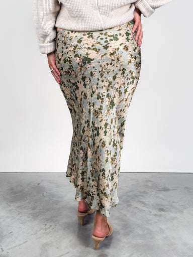 DESCRIPTION: Sleek midi skirt in lustrous satin jacquard with tonal floral pattern - High-rise waist - Side zipper - Fully lined SIZE & FIT...