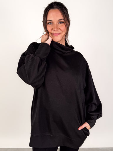DESCRIPTION: High Neck Dropped Shoulder Oversized Silhouette SIZE & FIT: Style is oversized. Model is 5'9 and is wearing a size L. MATER...