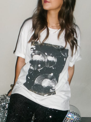 It's always party time with this relaxed, ultra comfy tee featuring a fun disco ball screenprint graphic. Made using our signature cotton jersey fabric, it's destined to become your casual wardrobe fave from this season and beyond.